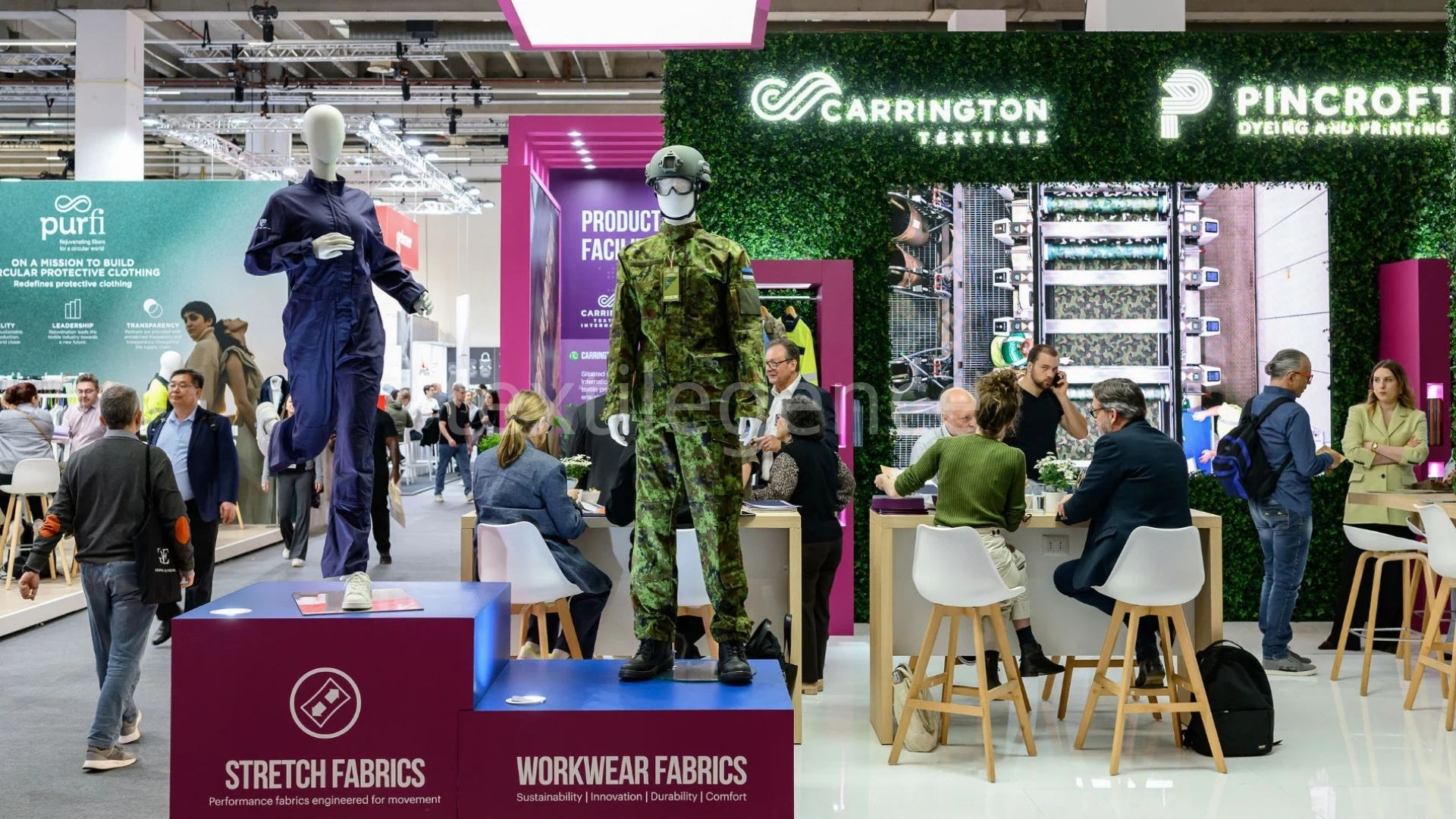 Techtextil’deki Performance Apparel Textiles segmentinde katılımcı sayısı bir önceki etkinliğe kıyasla iki katına çıktı. Güvenlik, savunma ve sivil koruma alanlarındaki artan yatırımlar, yüksek performanslı, standartlara uygun tekstiller ve özel işleme teknolojilerine olan talebi artırıyor. Şirketler, yoğun kullanıma dayanırken aynı zamanda belirli güvenlik gerekliliklerini karşılayan yenilikçi çözümlere yöneliyor. Techtextil’de katılımcılar, outdoor, spor, moda, askeri ve endüstriyel koruyucu giyim için tasarlanmış yüksek performanslı malzemeleri sergiledi. Texprocess ise bu talepleri karşılamak için gerekli işleme teknolojilerini sundu. Concordia, kalıcı alev geciktirici özelliğe sahip dayanıklı bir kumaş tanıttı. Advance Hitech Textile International ise iş kıyafetleri için özel aşınma direnci, boyutsal stabilite ve renk haslığına sahip esnek bir kumaş sundu.
